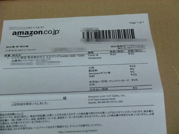 アマゾン(Amazon)の納品書も箱の中に入れて見ました。