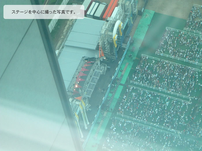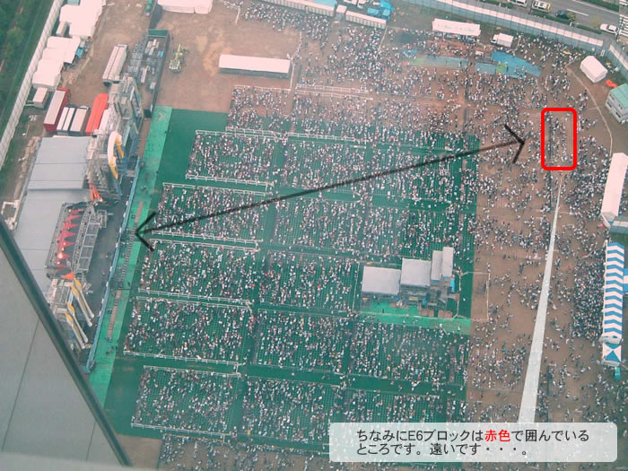 これは、隣にあるWTCというビルの46階から撮ってきた写真です。 会場の写真は残念ながら写せませんでした・・・(それに撮ったらあかんし・・・) 吹き出しにあるように、E6ブロックから見てました。ちょっと、遠かったな〜〜 でも楽しかった〜〜(^^