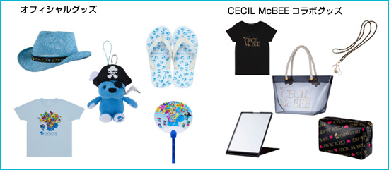 (グッズの一覧。a-nationオフィシャルグッズとCECIL McBEEコラボグッズが紹介されています。