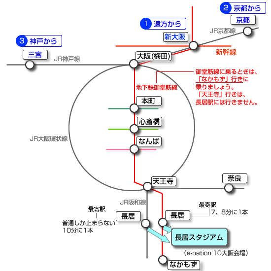 当日は何時に会場に行けばよい?| a-nation'10大阪会場「長居スタジアム」へのアクセスタイムテーブル
