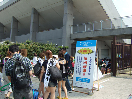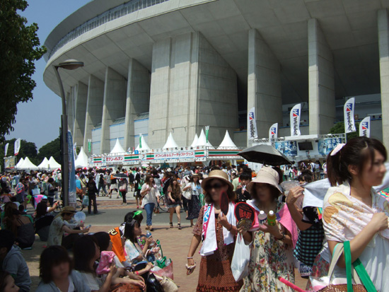 スタジアムから外を眺める機会があったのですが、チケットを手に入れられなかった人がたくさん「ただ聞き」(←表現悪すぎ・・・)してましたが、エコバックを持っているのと同時にグッズをたくさん買ってらっしゃいました。
