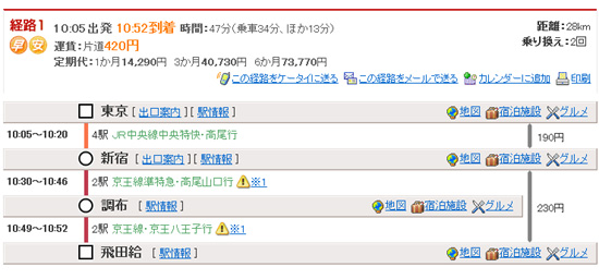 10:05東京→(JR中央線特快・高尾行)→10:20新宿