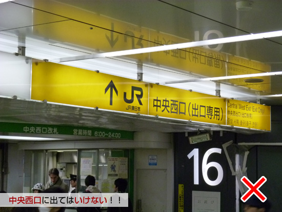中央西口方面に向かうと「中央西口(出口専用)」の出口がありますが、