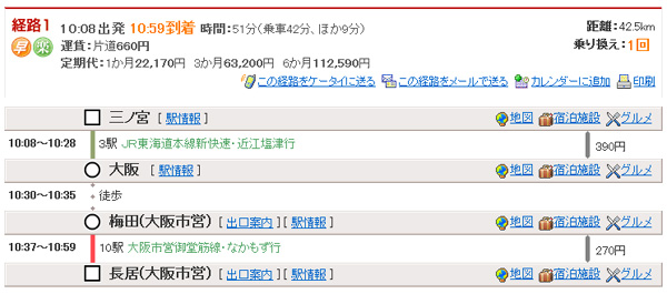 三ノ宮10:08→(JR東海道本線新快速・近江塩津行)→大阪10:28