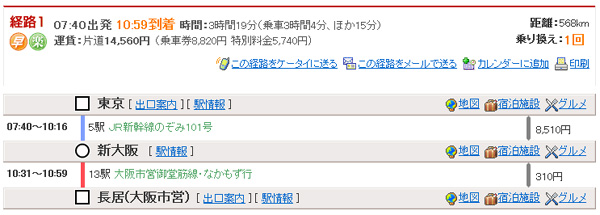 ・東京7:40→(新幹線のぞみ101号)→新大阪10:16