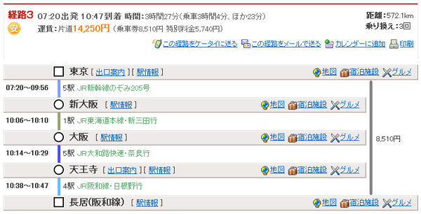 JRだけを使って、地下鉄分の料金を浮かせています。