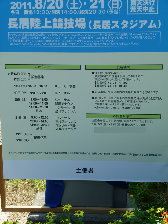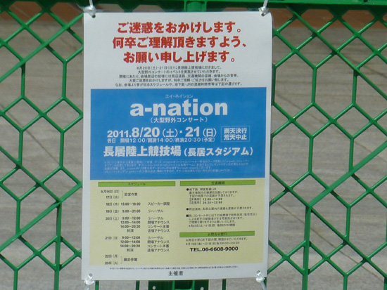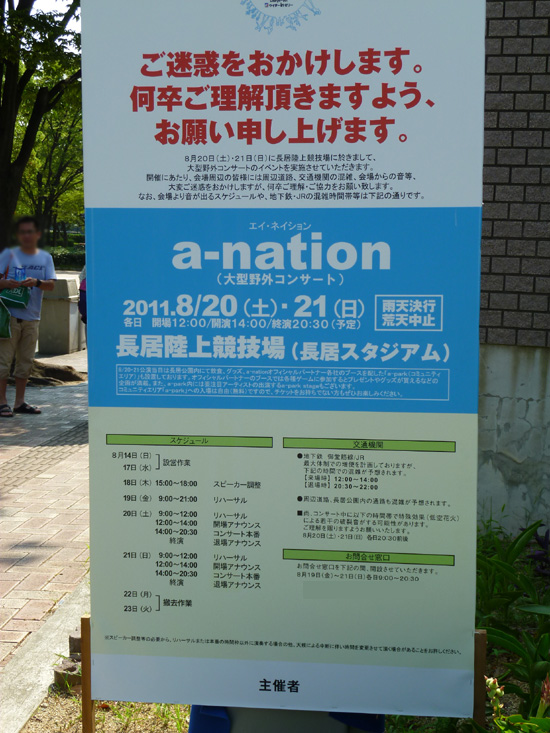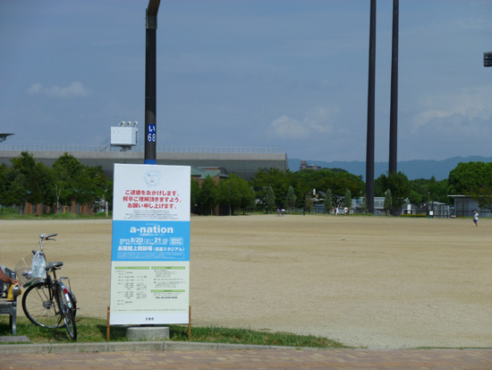 長居公園の入り口にはa-nation開催のお知らせ看板が。