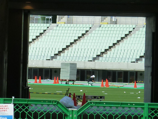 スタジアム内では設営作業を行われています。