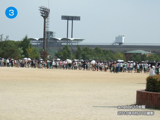 (「a-nation 大阪を写真で振り返る」の写真1付近には11:05頃到着予定)