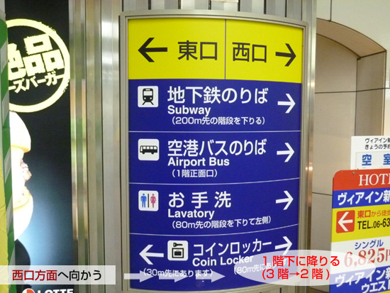 ■新大阪に着いたら、西口方面へ向かい、階段を降りる!