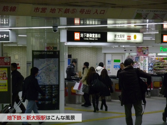 新大阪から地下鉄御堂筋線(みどうすじ・せん)に乗るだけで、