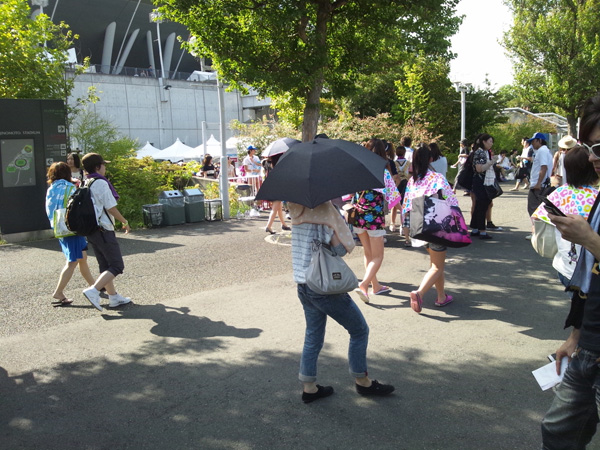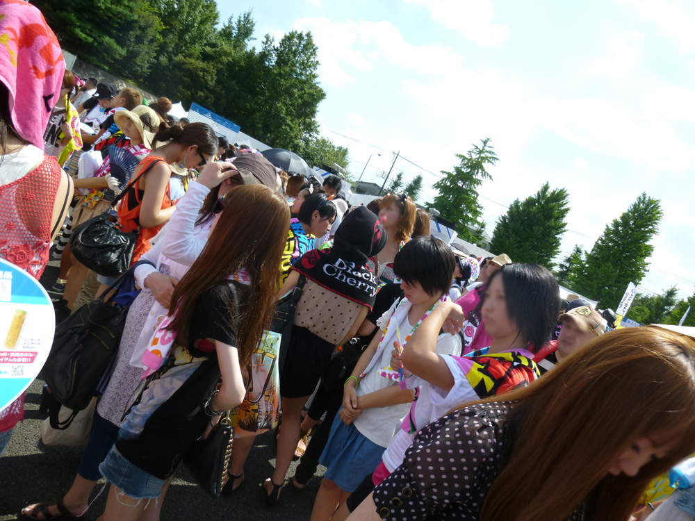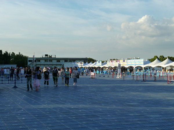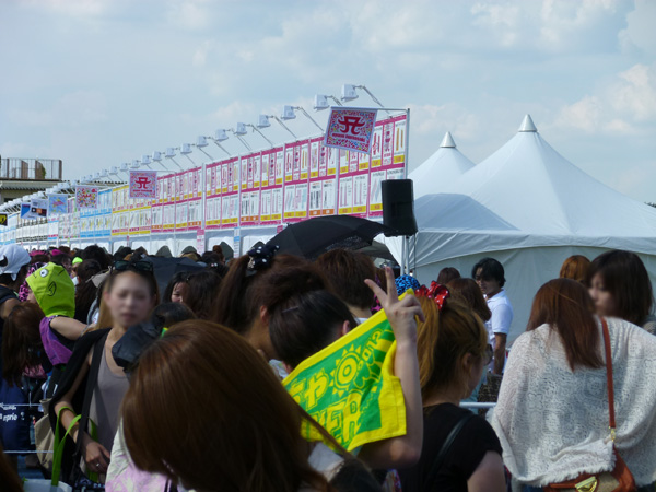 今日は「月曜日」ですよ!?土・日のような人ごみでした。 この参戦レポの原稿をホテルのチェックアウトぎりぎりの朝11時まで書いてたので、 当日券の整理券は、16時−16時半でした。 やっぱりみんな考えるのは同じなのか、この日、「a-nation」のエコバック持っている人、 この写真を撮っているときにもエコバック持っている人、見かけましたよ!