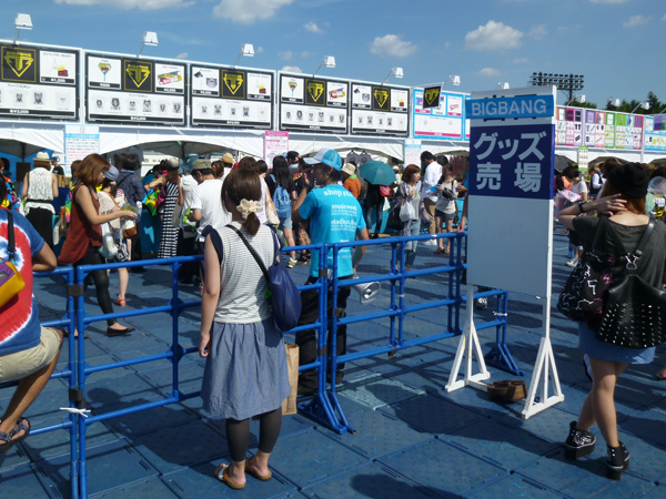 ■スタジアムに入る!僕がスタジアムに入ったのは、15時くらい。 オープニングアクトのステージをやっていました。 座席表で座席を確認して、C12ブロックへ。 アリーナの後ろから(K→J→H→・・・)と前に進むにつれて、 どんどんステージに近づいていく! C12ブロックまで到着すると、本当に目の前!! このときの爽快感は結構なものがありました。 チケットチェックは相当厳しかったです。 C12ブロックに行くまでに、関所(?)が3箇所あって 3回チケットチェックを受けました。