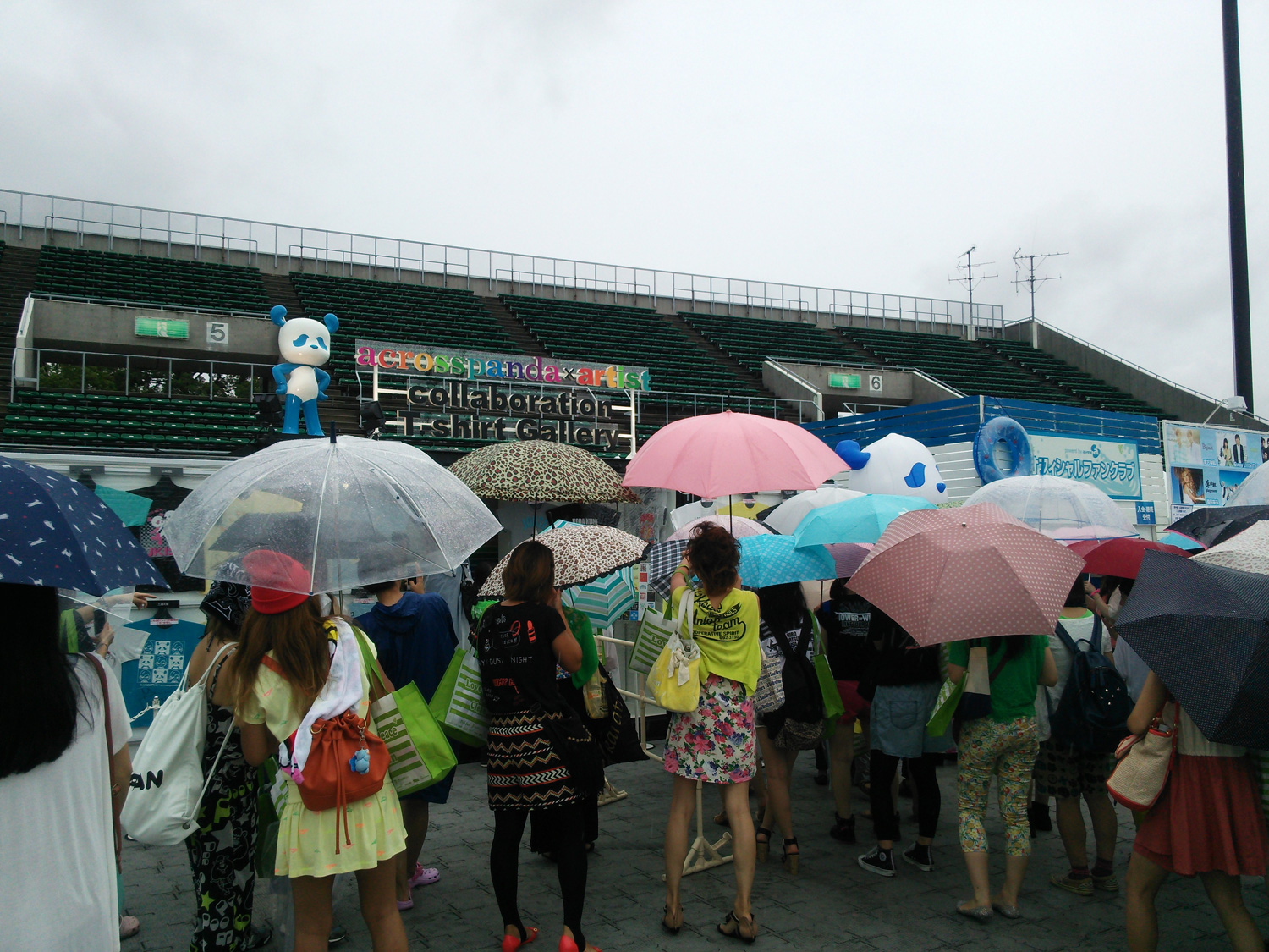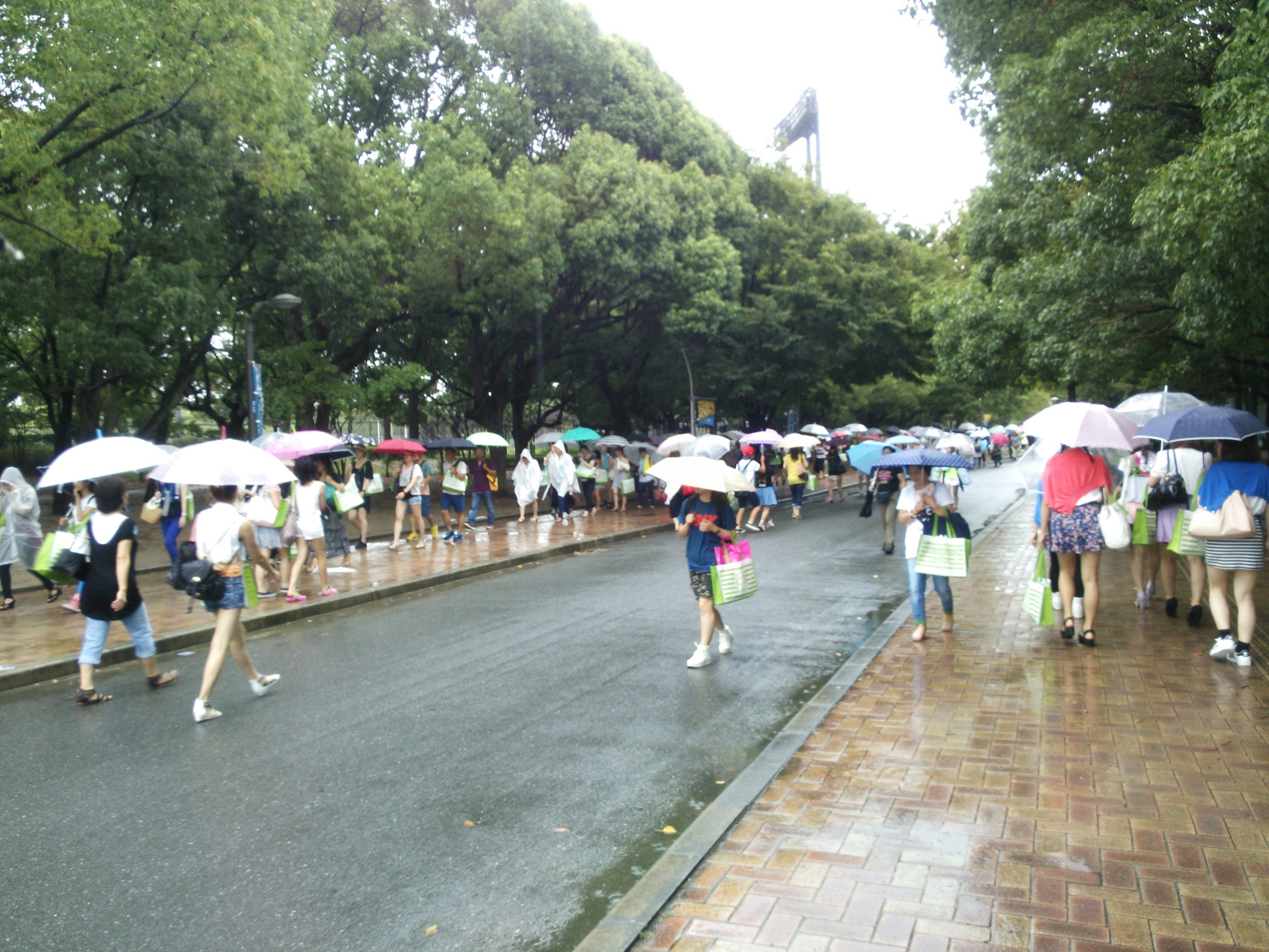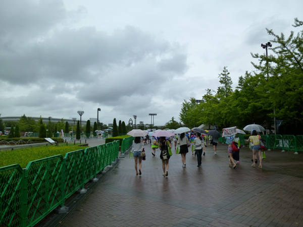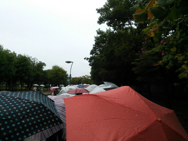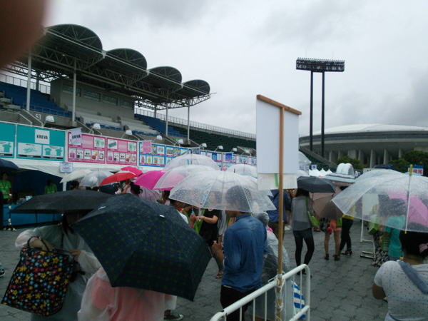 グッズ広場に入るための列。傘のオンパレード!!