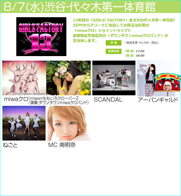 5日目は、あっという間にチケットが完売した「GIRL'S FACTORY '13」!