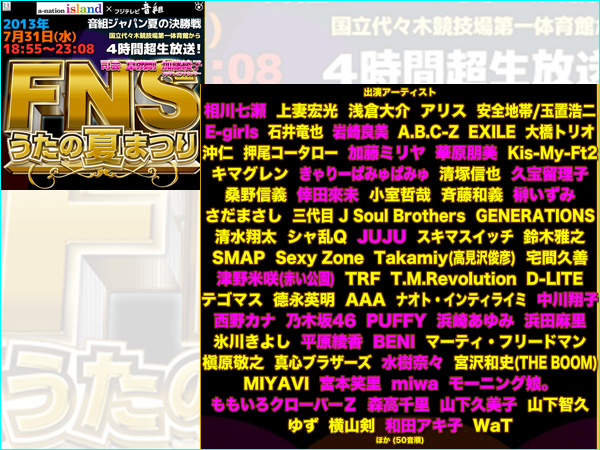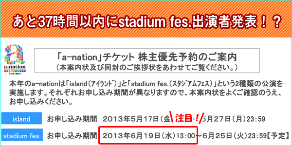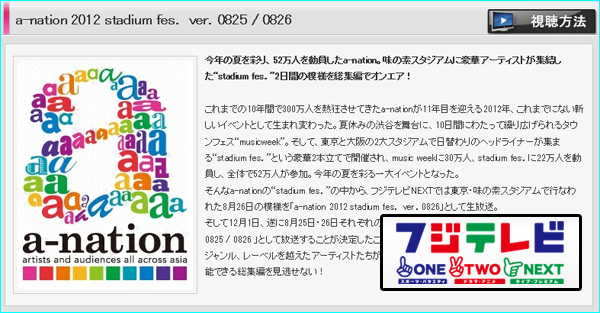 つまり、2012年の「a-nation」のスタイルが今年2013年も継続される と思われます。