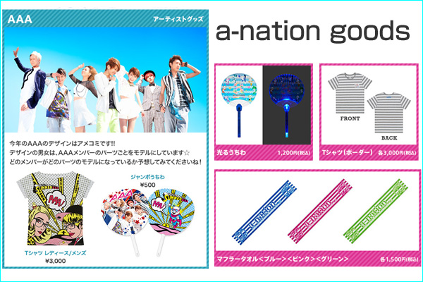 2013年7月10日、公式HPにてa-nation公式グッズとアーティストグッズの発売が開始されました!