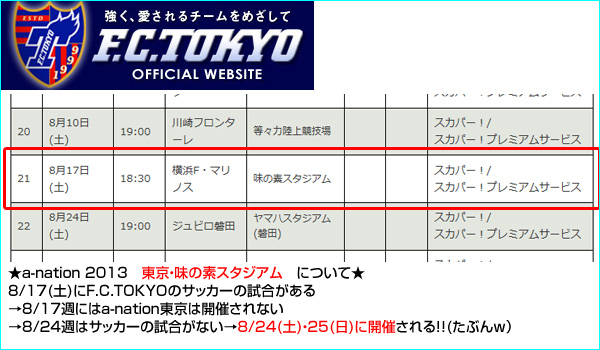 8/17週には「a-nation・東京in味の素スタジアム」は開催されないことになります。