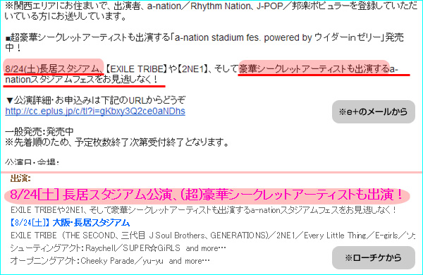 8月21日(水)、「e+(イープラス)」からこんなメールが届きました。
