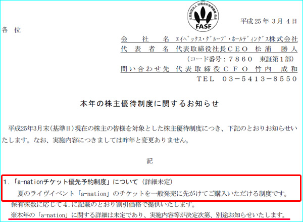 その中の本年の株主優待制度に関するお知らせ (PDF)にて、