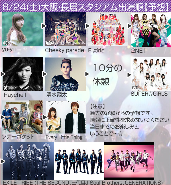8/24(土)長居スタジアム 、【EXILE TRIBE】や【2NE1】、そして豪華シークレットアーティストも