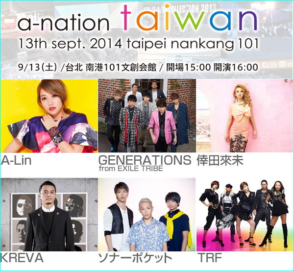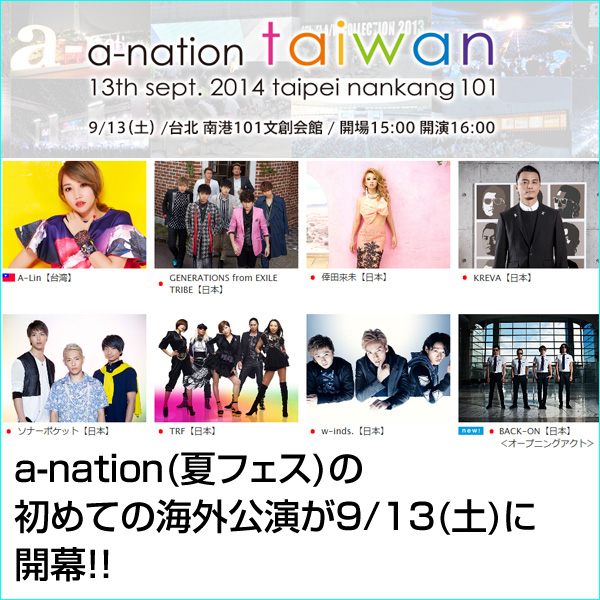 7/28(月):a-nation 2014 taiwan第1弾アーティストのアナウンスがされる!