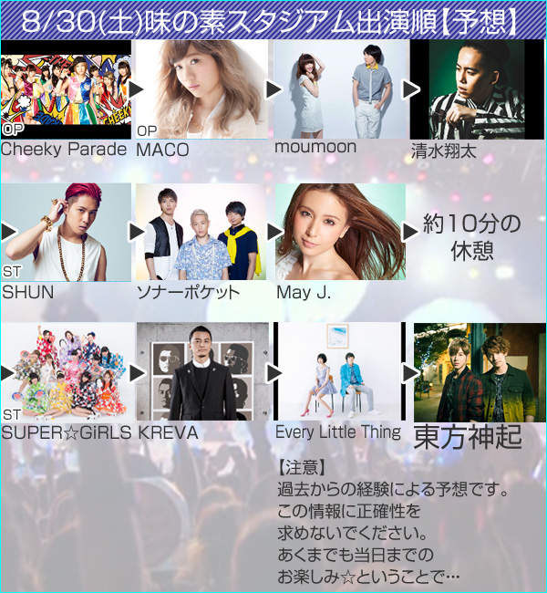 きっと、皆さんが気になっているだろうこと、そう、アーティストの出演順ですね!