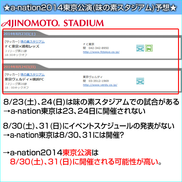 a-nation 2014 ついにスタート!&味の素スタジアム座席表予想!