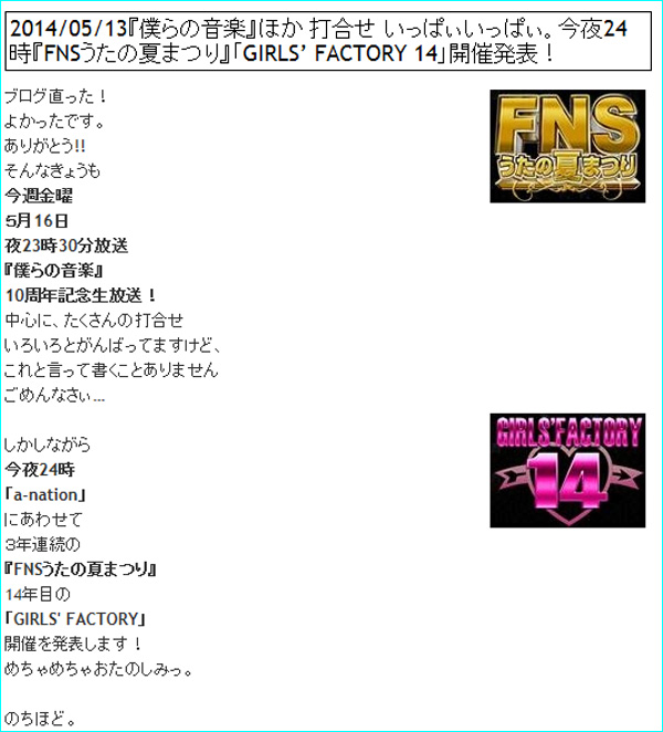 同日、「a-nation」と深い関わりのある、「FNSうたの夏まつり」も