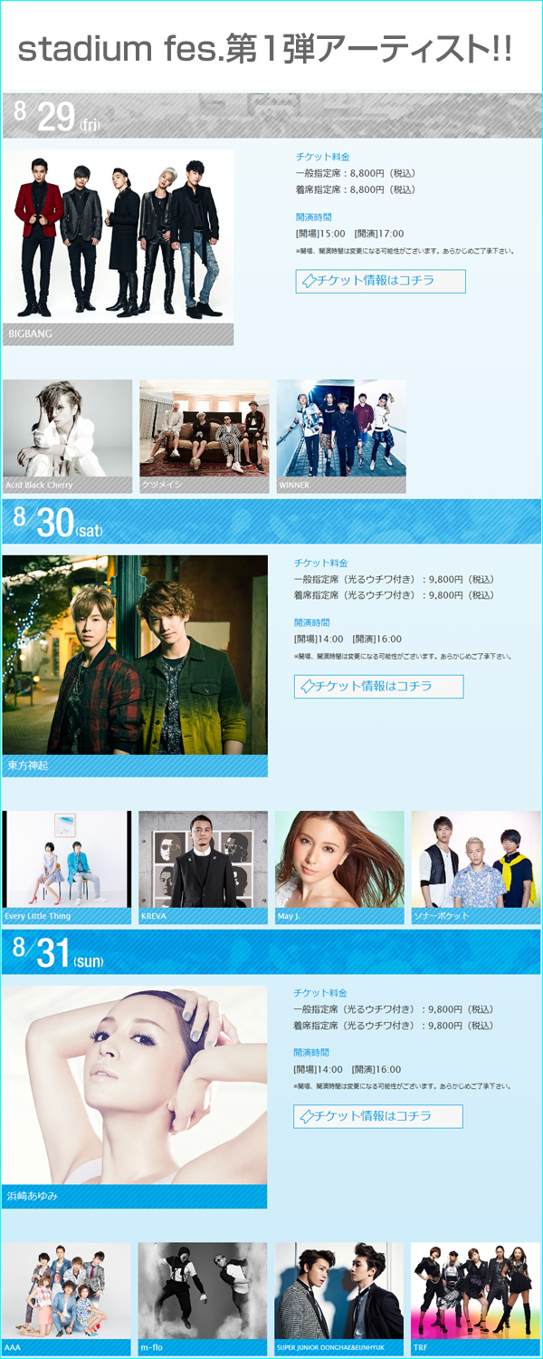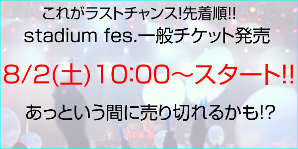ついに!stadium fes.の一般チケットの発売が8月2日(土)10:00〜