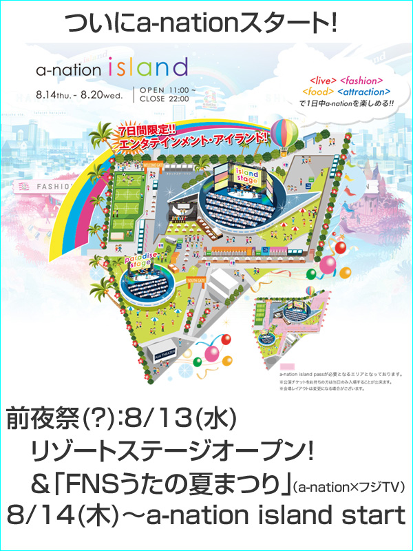 その中の最初「a-nation island」が1週間後の8月14日(木)