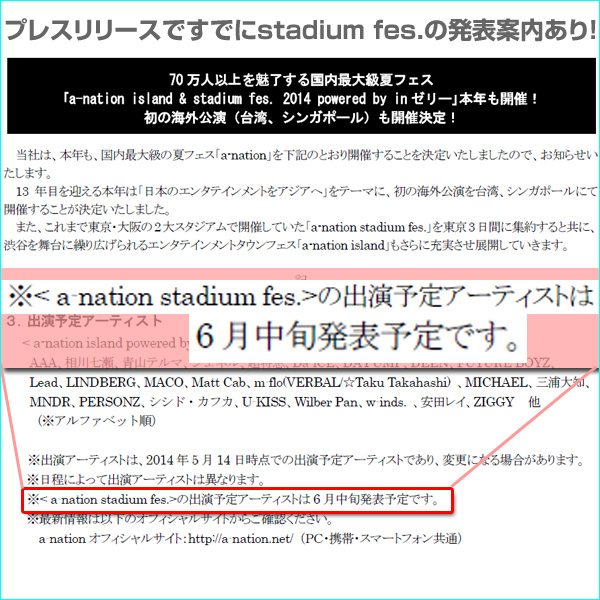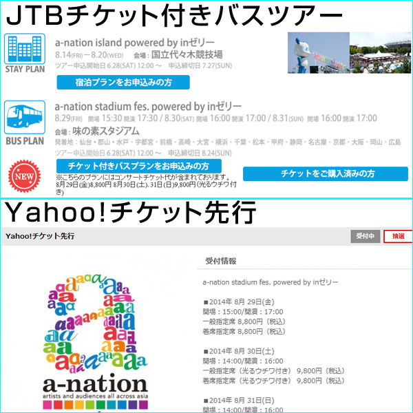 a-nation 2014 実質本日8月13日からスタート&8/30(土)チケットアリ!