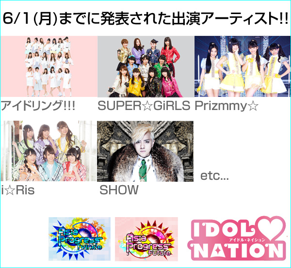 5/30(土)、6/1(月)に公式HPにて 「IDOL NATION」の正式タイトルは、 出演者は、 また、「AsiaProgress」でも追加アーティストが