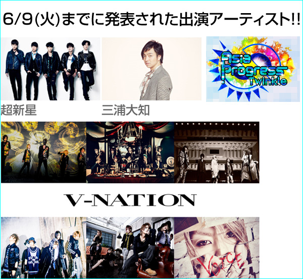6月9日(火)、公式HPにて 超新星と三浦大知の出演が決定しております! そして、第二体育館公演の「V-NATION」の発表も