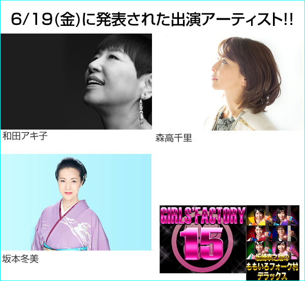 6月19日(金)、公式HPにて、 「a-nation」でまさかの和田アキ子!森高千里!坂本冬美! もはやなんでもありです(笑) 「a-nation」の中でもフジテレビ色(音組)が強い3公演だからこそできる でも、和田アキ子は去年のシークレットアーティストで登場! まさかの発表に驚きですね!