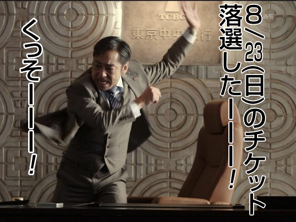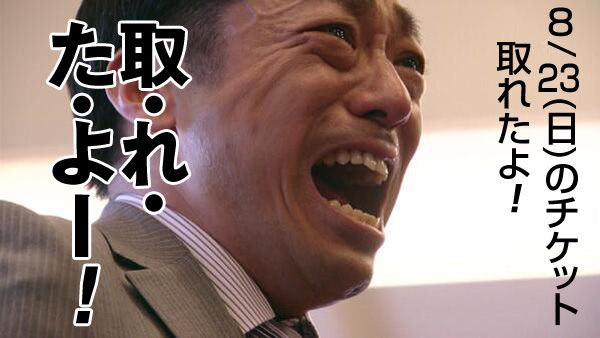 ■なんと!管理人、8/23(日)公演も参戦します! 誠に個人的な話で申し訳ございませんが、 管理人「T.H.」、8/23(日)公演も参戦決定!! となりました! 実はあれから、「チケットぴあ」を繰り返しチェックしていると、 そこで、即時買いしました! ということで、8/23(日)も行くことができます! 8/23(日)も会場実況中継する予定ですので、