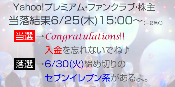 皆さん、stadium fes.の最速先行チケット その当落発表が6月25日(水)15時に発表されます! 公演日によっては相当な倍率も予想されるので、 もうすぐの発表になるので、当選することを期待しましょう! 僕も最速先行チケットで申し込みしましたよ! もし、落選しても「セブンイレブン系」チケットの 果たして、どうなるか!? 発表までもうすぐ!