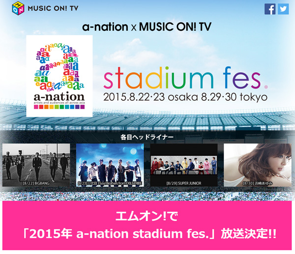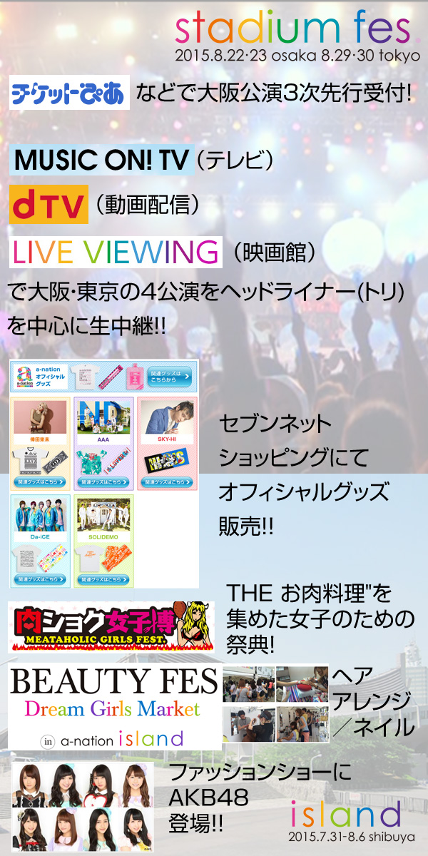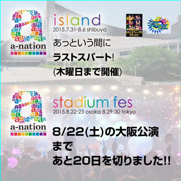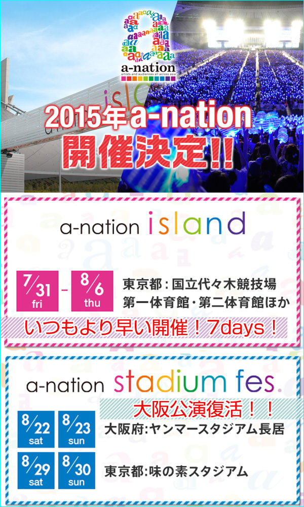a-nation 2015 IDOL NATION&追加アーティスト!8/1・2、スタジアムは!?