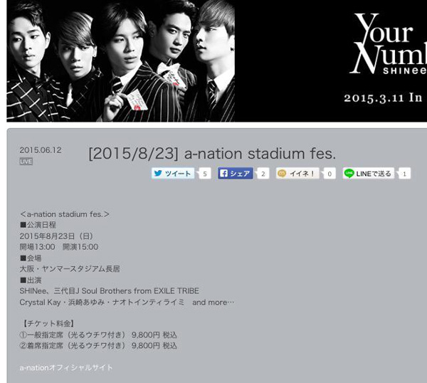 a-nation 2015 セブンイレブン系チケット!stadiumの発表は・・・!?