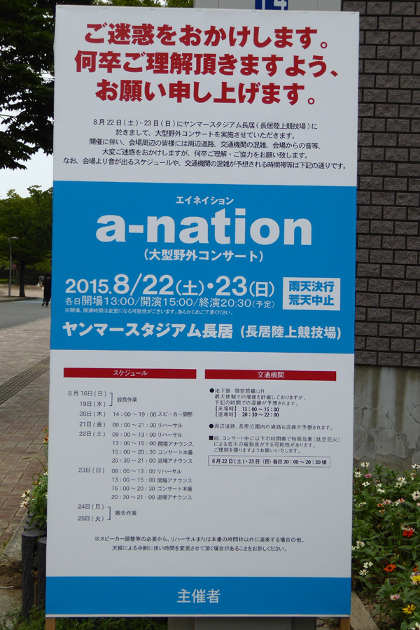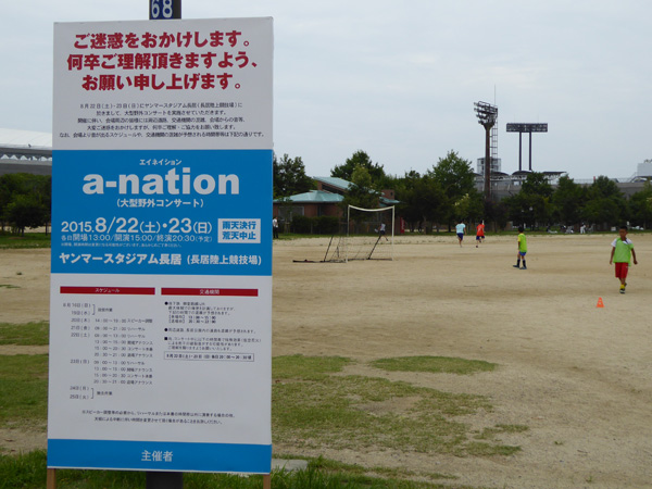 長居公園入り口の広場にはa-nation開催のお知らせがあります。
