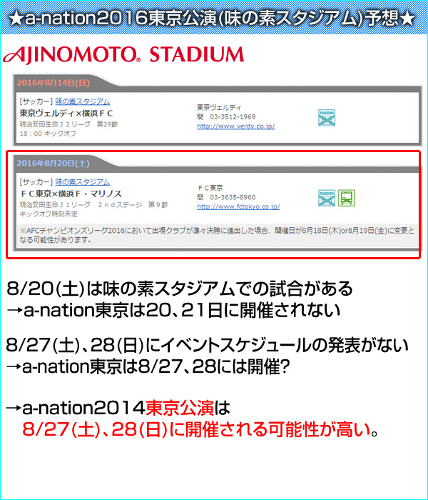 a-nation 2016 第3弾アーティスト!味スタホテル情報!