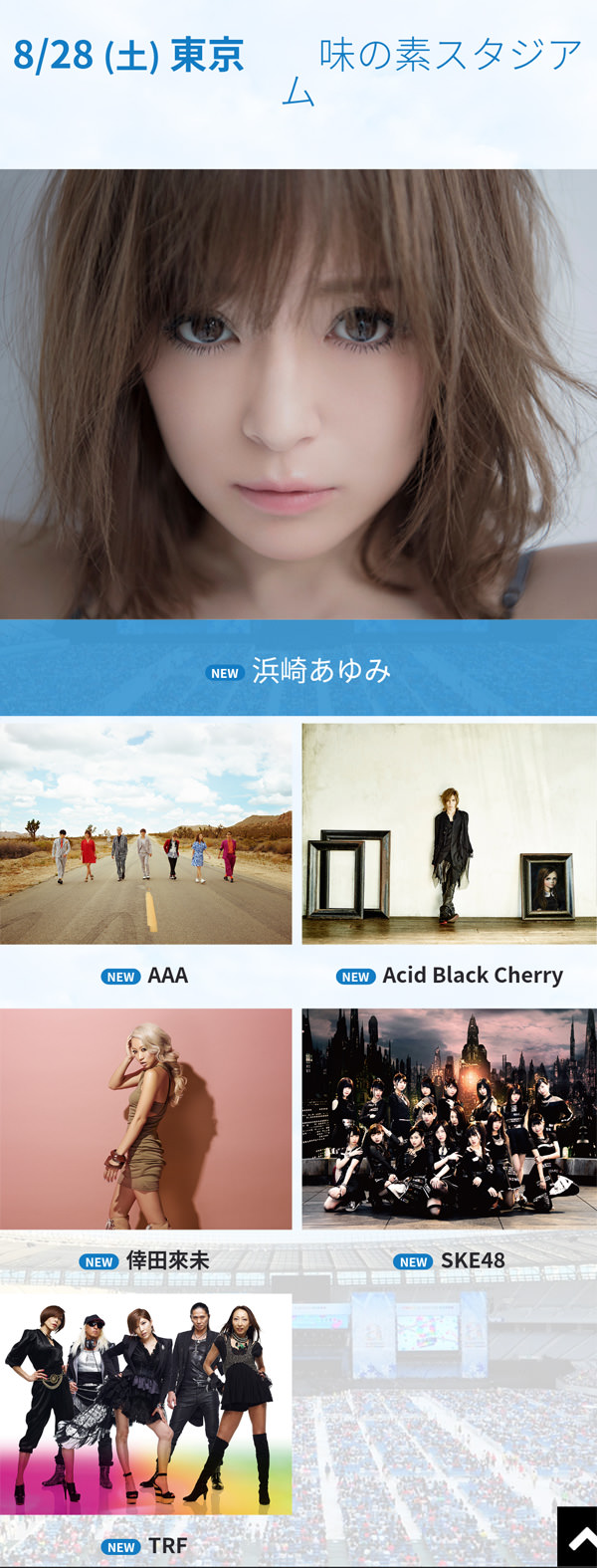 ■「island公演」一般発売開始しています! island公演も昨日7/2(土)10:00から、8/2(火)の「FEVER a-nation by SANKYO」以外のチケット一般販売がスタートしています!先着順なので、予定販売枚数を超えると「売り切れ」になるので、ご注文はお早めに! そして、8/2(火)の「FEVER a-nation by SANKYO」には浜崎あゆみの出演が発表されました! さらに、「island」の「リゾートステージ」のタイムスケジュールも発表され、SOLIDEMOや「月曜から夜ふかし」で有名になった「イルマニア」も登場するようです。