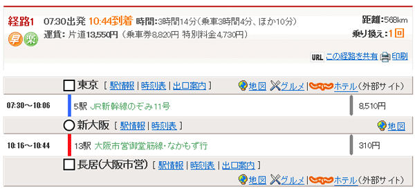 ※東京以外から新幹線を使って新大阪に行く場合でも、