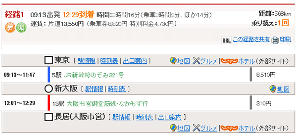 ・東京9:13→(新幹線のぞみ321号)→新大阪11:47