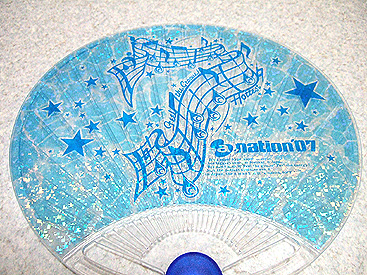 03年と04年の「光るうちわ」は、いろいろな色に変わるうちわだった。(上の写真は、a-nation04のもの。)