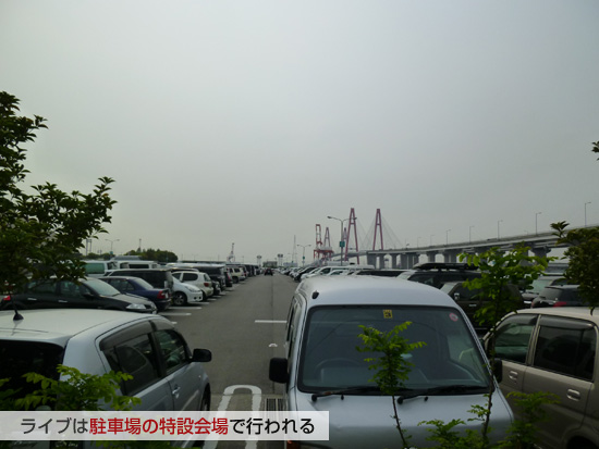 ライブは「ポートメッセなごや」の中というよりも、そこに設置されている駐車場を借りきって、