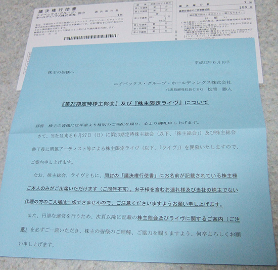 2010年6月27日、avex株主総会&株主ライブに行ってきました!