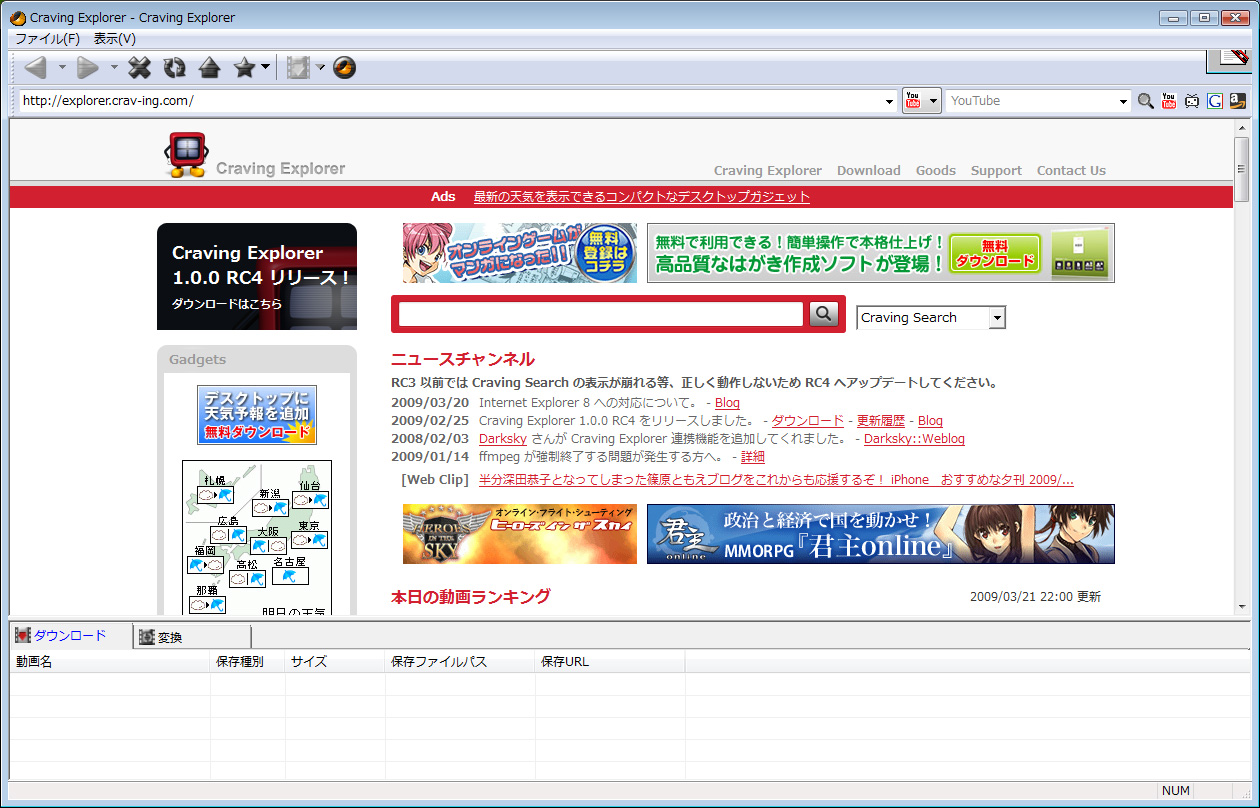 「craving Explorer」は、YouTubeの動画をダウンロードできるソフトです。