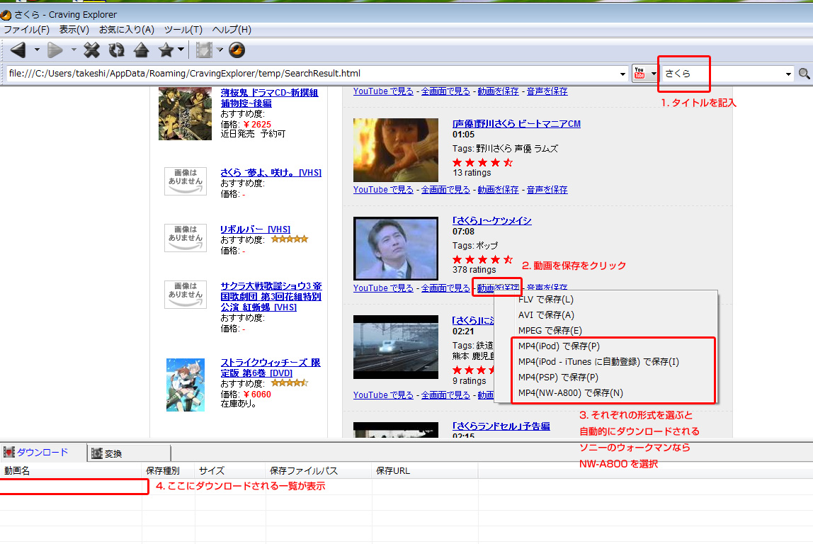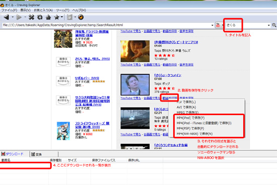 2.音楽PV(プロモーションビデオ)をダウンロードしてiPod、ウォークマンに転送する 使い方は、いたって簡単です。