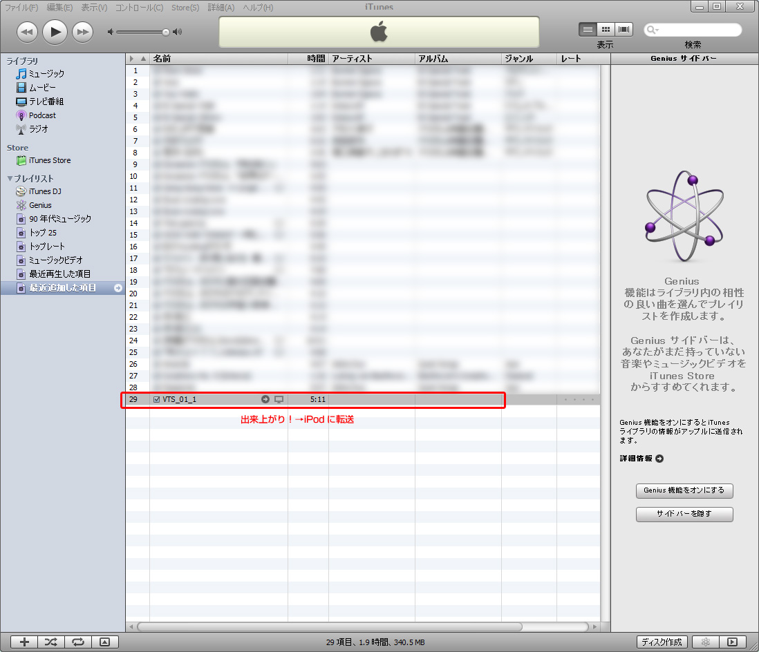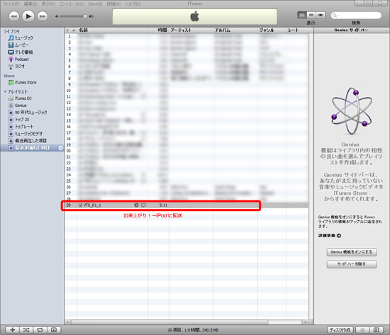 あとは、iTunes上で名前を変更して、iPodに転送してください。